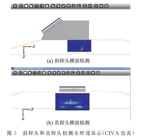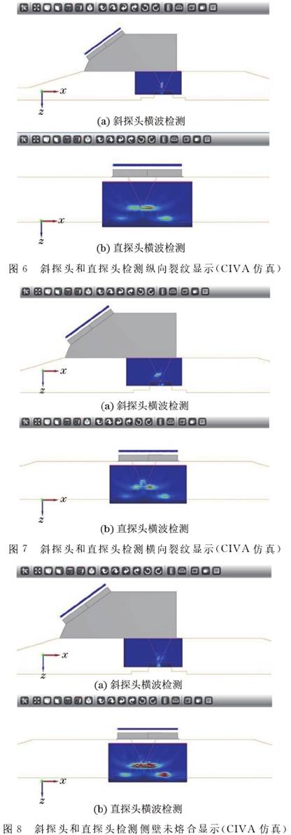 流(liu)量計殼體焊縫的(de)缺陷主要位于焊(han)縫根部,缺陷形式(shi)一般爲未焊透、側(ce)壁未熔合、裂紋、夾(jia)渣和氣孔等畢✨,采(cai)用CIVA仿真✊軟件對流(liú)🐅量計殼體焊縫根(gen)部中的常見缺陷(xian)進行全聚焦相控(kong)陣超聲檢測,結果(guo)如圖5~9所示