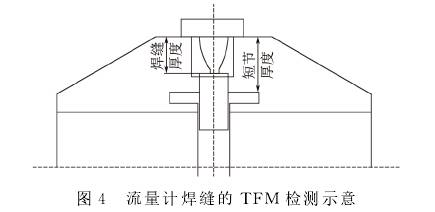 TFM方法以全矩(jǔ)陣數據爲基礎,多(duo)陣元相控陣探頭(tou)依次激勵每一個(ge)晶片,激發球形波(bō)入射至材料中,每(mei)一次發射🏃🏻後,材料(liao)中不連續的反射(she)回波将同時被🥵所(suǒ)有晶片接收,将檢(jian)測信号通❄️過後處(chù)理聚焦于檢測區(qu)域中的每一個點(diǎn)上,利用檢測區域(yù)🐅中每一個點的幅(fú)值信息重構出二(èr)🔱維圖像,可獲得高(gao)分辨率成像.效果(guǒ),實現缺陷的準确(que)定位及定量分析(xī)。流量計的焊縫⭐TFM檢(jiǎn)測示意如圖👉4所示(shì),其能一次完成焊(hàn)縫區域的厚度測(cè)量和缺陷檢測341