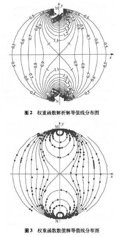如圖3所示,爲(wèi)權重函數數(shù)值解等值線(xiàn)。将其與圖2進(jìn)行對比,發現(xiàn)二者沒有太(tai)大差别。表明(míng)利用有限元(yuán)方法計算權(quan)重函數是高(gāo)效可行的研(yan)究方法,并且(qiě)可通過增加(jiā)網格密度來(lái)提高計算精(jīng)度。