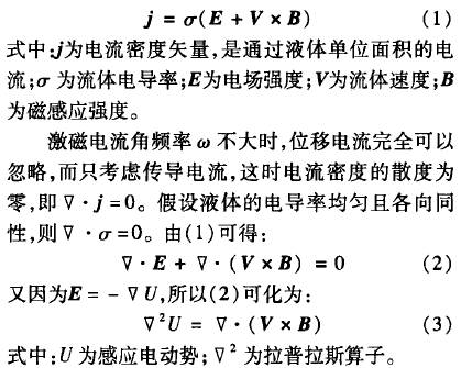 當導電(dian)性液體在磁(ci)場中作切割(ge)磁力線運動(dòng)時,液體中有(you)感應電流産(chan)生。根據歐姆(mu)定律有: