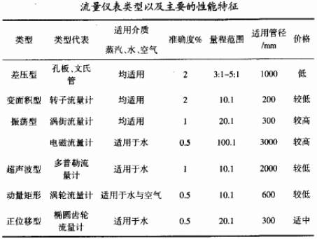 以及容(rong)積式流(liú)量計等(deng),見表。