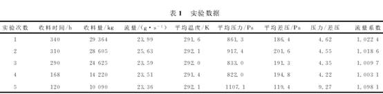 貧(pín)料收料采用(yòng)單線運行模(mó)式,用平衡流(liu)量計共進行(hang)了5次測量實(shi)驗,每次實驗(yàn)持續5~15d不等,累(lei)積收料量從(cóng)10~30t不等,實驗數(shu)據列于表1。