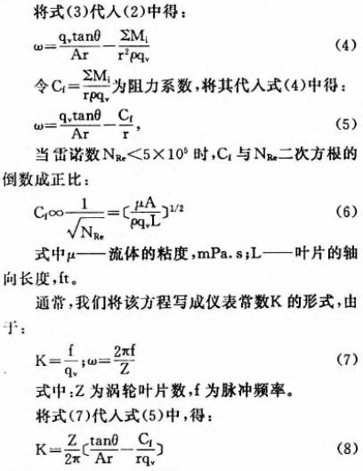 由(you)式(5)和式(6)可(ke)見:當流體(ti)的粘度增(zēng)大時,渦輪(lun)的轉動角(jiǎo)速度變小(xiǎo);當流體密(mi)度變大時(shi),渦輪的轉(zhuǎn)動角速度(dù)也随之增(zeng)大.在流體(tǐ)速度較小(xiǎo)(相當于層(ceng)流狀态🧡)時(shi),渦輪的頻(pín)率響應非(fei)線性,且受(shòu)流體性質(zhi)變化彬響(xiang)較大;當流(liu)體速度較(jiào)高(相當于(yú)湍流狀态(tài))時,式變小(xiǎo),渦輪響應(yīng)近似線性(xìng),儀器常數(shu)K基本🌍上不(bu)受流體💛粘(zhan)度變化影(yǐng)響。