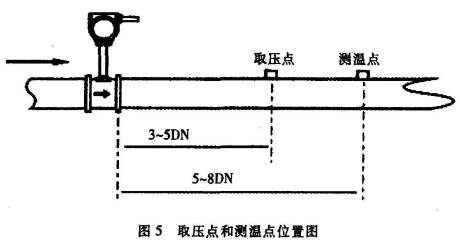 (3)取壓(ya)點和測溫點,應(ying)分别在傳感器(qi)的下遊3-5DN處和6~8DN處(chu)見圖5。