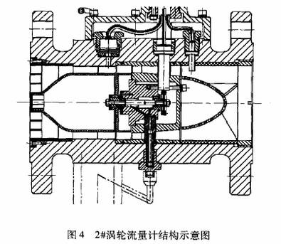 圖3和(hé)圖4分别爲1#流量(liang)計和2#流量計的(de)結構示意圖。從(cóng)☎️圖🌈中可🌐以看出(chu)兩台渦輪前後(hou)導流體結構差(chà)異較大。在傳感(gan)器進出口🎯裝有(you)💔導流體,它對流(liú)體起導向整流(liu)以及支承🔞葉輪(lun)的作用,前導流(liú)體可以抗流體(ti)流動的幹擾。2#流(liu)量計的前導流(liú)體從結構設計(ji)上比1#流量計更(gèng)具有抗擾流作(zuò)用,從而降低了(le)對前直管段要(yào)求。