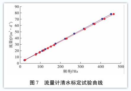 的旋渦脫(tuō)落頻率與參(cān)考流量計的(de)流量爲變量(liang),對📧流量計特(te)性☀️進行線性(xing)拟合。本文中(zhōng)所使用的油(yóu)相介質爲15#工(gōng)業白油,運動(dong)粘度13.5mm2/s(40℃),參考流(liú)量計類型爲(wèi)渦✔️輪流量計(ji),由于🚩流量測(cè)量範圍較大(dà),因此選擇測(ce)量範圍爲4.8~28.8m3/d以(yi)及14.4~144m3/d的2台參🏃考(kao)流量計進行(háng)标定,參考流(liu)量計的精度(dù)爲5‰。清水标定(dìng)試👨❤️👨驗數據見(jiàn)表1、表2所示,拟(nǐ)合曲線如圖(tu)7所示。由此可(kě)見,本文🐪井下(xia)渦街流量計(ji)具✍️有良好的(de)🐉重複性🎯,且相(xiàng)對誤差小于(yu)1%。