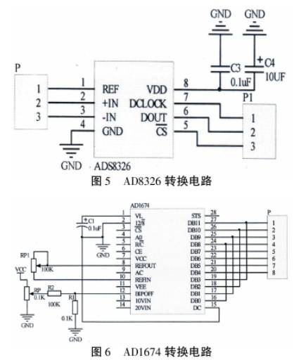 AD1674是--片高(gāo)速12位逐次(ci)比較型A/D轉(zhuǎn)換器,内置(zhì)雙極性電(dian)路構成的(de)混合集成(chéng)轉換顯片(piàn),具有外接(jiē)元件少,功(gōng)耗低,精度(du)高等特點(dian),并且具有(you)自動校零(ling)和自動極(jí)性轉換功(gong)能,隻需外(wài)接少量的(de)電阻和電(dian)容元件即(ji)可構成一(yi)個完整的(de)A/D轉換器。AD8326是(shì)TI公司推出(chu)的16位高速(sù)模數轉換(huàn)器,其轉換(huàn)速度快,線(xian)性度好精(jīng)度高。電路(lù)的連接圖(tu),如圖5和圖(tu)6所示。