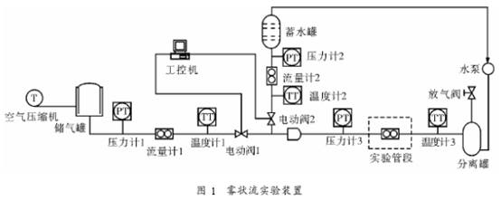 空氣(qì)壓縮機将空氣(qì)壓縮後送入儲(chu)氣罐,流量計1計(jì)量氣液🛀🏻混合前(qian)儲氣罐送入管(guǎn)道的氣體流量(liang)。蓄水罐距🔴離地(di)面30m提供實驗所(suǒ)💘需的液相,其流(liu)量由流量計2測(ce)得。氣相和液相(xiàng)經混和器混和(he)後送入實驗管(guǎn)段,最後流🏃🏻入分(fen)離罐🚶♀️将水和空(kong)氣進行分離,空(kong)氣由放氣閥排(pai)出,水由水泵送(sòng)回蓄水罐循環(huán)使用。。工控機對(duì)所有儀表數據(ju)進行采集和顯(xian)示并對兩個電(diàn)動調節閥進行(hang)控制,調節氣相(xiang)和液🍉相的流量(liang)