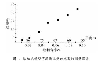 圖3爲(wei)最後得到的渦(wo)街流量計的測(cè)量誤差,從圖中(zhong)⭐可以看📱到,将霧(wu)狀流看作均相(xiàng)流後,,渦街流量(liàng)計測量得到的(de)質量流量📱值與(yu)實際值之間依(yi)然存在有較大(da)的🧑🏽🤝🧑🏻誤差,并且誤(wù)差會随着旋渦(wō)脫落頻率的增(zeng)加而增加。