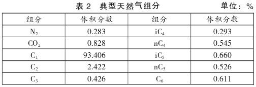 設(she)計組分(fen)選取典(dian)型天然(ran)氣組分(fen),如表2所(suǒ)示。