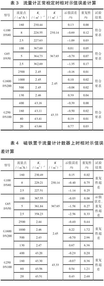 還以上(shang)面4台流(liu)量計作(zuo)爲試驗(yan)對象,在(zai)安裝方(fang)式和環(huan)境條件(jiàn)不👣變的(de)情況下(xia),将磁鐵(tiě)置于流(liu)量計計(ji)數🌏器正(zheng)🥰上方後(hou),再次按(àn)照檢定(ding)規程要(yào)求進行(hang)試驗,結(jie)果如表(biao)4所示。