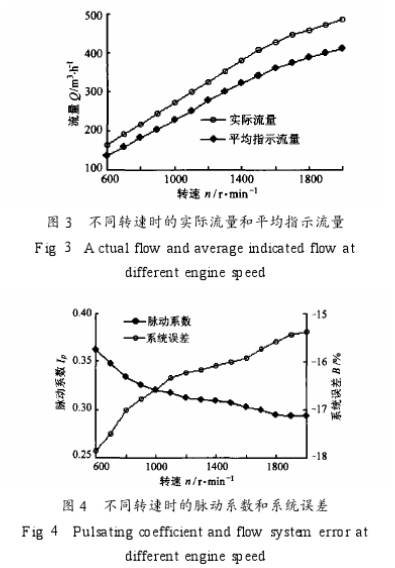 圖(tú)3示出了(le)發動機(ji)各轉速(su)時的實(shí)際流量(liàng)和平均(jun1)指示流(liu)量,圖4示(shì)出了發(fa)動機各(gè)轉速時(shí)的流量(liang)脈動1系(xì)數和系(xi)統誤差(cha)。