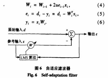 設采集獲得的(de)渦街流量信号(hào)爲原始信号,參(can)考輸人爲采集(jí)獲得的管道振(zhen)動加速度信号(hao),濾波器系統如(ru)圖6所示.