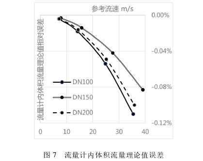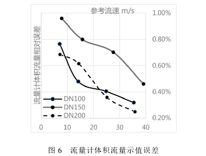 根據(jù)實驗數(shu)據,流量(liàng)計體積(ji)流量示(shi)值與計(jì)算所得(de)理論實(shi)際值雖(sui)然不相(xiàng)等,但從(cong)相對标(biao)準裝置(zhì)示值😘的(de)誤差線(xian)性關系(xi)來💛看,兩(liǎng)者所呈(chéng)現的誤(wù)差均随(sui)着流速(sù)的增加(jiā)而往負(fu)方向增(zēng)長♈,如圖(tu)6、圖7所示(shi)。從這個(gè)角度來(lái)看,符合(hé)“因過🌐程(chéng)存在壓(yā)能損失(shi)導緻下(xià)遊測💃壓(ya)所得靜(jìng)壓值偏(pian)小,流量(liang)裝置換(huàn)算出✏️的(de)标準體(tǐ)積流量(liang)示值偏(pian)大”這一(yī)分析。