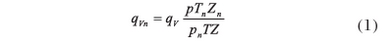 式中qvn、qv-分别爲(wèi)标準狀态和工(gong)作狀态下的體(ti)積流量,m³/h;p、T、Z-分别爲(wei)工.作狀态下絕(jué)對壓力(Pa),熱力學(xue)溫度(K)和氣體壓(yā)縮系數;pn、Tn、Zn一分别(bié)爲标準狀态下(xia)絕對壓力(Pa),熱力(lì)學溫度(K)和氣體(ti)壓縮系數。