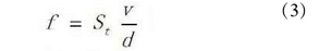 式中:f爲渦街(jie)頻率,Hz;S,爲斯特(te)羅哈爾常數(shu)(無量綱);v爲流(liú)體經過發生(sheng)體時的平均(jun1)流速,m/s;d爲發生(shēng)體的特征寬(kuan)度,m。