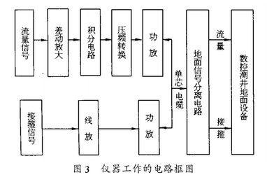過(guò)芯加重上接(jie)頭與單芯電(dian)纜頭連接,井(jing)下儀器用單(dan)芯電纜供電(dian)和傳輸信号(hao)。儀器可用于(yú)上提連續測(cè)量流量和定(ding)點測量流💘量(liàng)。圖3爲儀器工(gōng)作的電路😍框(kuàng)圖。井下儀器(qì)通過單芯電(diàn)纜與數控測(cè)井地面設備(bei)配接,地面供(gong)直流電壓60~80V,電(dian)流約80mA。連續測(cè)井時,流量👣信(xin)号與套管☁️接(jiē)箍信号通過(guò)單芯電纜到(dào)達地面設備(bei),經過地面信(xin)号分離電路(lu)處理成兩路(lu)單獨的信号(hào)。接箍信号被(bei)處理成模☔拟(nǐ)信号,可以進(jìn)到數控測井(jǐng)地面設備的(de)模拟道處理(li)和記錄;流量(liàng)信号被處理(li)成脈沖頻率(lü)信号,可✉️以進(jìn)到數控測井(jing)地面設備的(de)脈沖道處理(lǐ)和記錄。這兩(liǎng)種信号是測(ce)井儀器最🏃🏻常(chang)用的信号,因(yīn)此,井下儀器(qi)可以方便地(di)挂接在其🌈他(tā)地面測井設(shè)備上使用。測(cè)井💋資料的錄(lù)取和處理通(tong)過數控測井(jǐng)地面設備的(de)注入剖面🔴測(ce)井軟件完🔴成(cheng)。