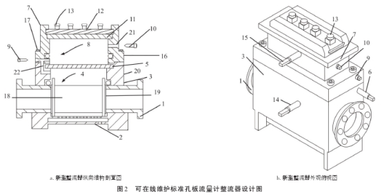 根(gēn)據國家标(biāo)準(GB/T21446-2008)規定,标(biāo)準孔闆流(liu)量計整流(liu)器分爲兩(liǎng)種:一種爲(wei)管束式,即(ji)整流管;另(lìng)一種爲孔(kǒng)闆式,即整(zheng)流闆。兩者(zhe)均✏️爲固定(ding)式安裝模(mo)式。新型整(zheng)流器在固(gu)定式整流(liu)器結構的(de)基礎上,以(yi)國家标準(zhǔn)爲依據,利(li)用閥腔阻(zu)隔結構,結(jie)合齒輪傳(chuán)動原理🔆進(jin)行設計🧑🏾🤝🧑🏼,使(shi)其滿足對(dui)管束式及(jí)孔闆式的(de)使用需求(qiu)(圖2)。