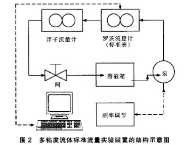 多粘度(du)流體标準(zhǔn)流量試驗(yan)裝置的結(jie)構示意圖(tú)如🤩圖2所示(shì)。流體✍️由泵(beng)注人裝置(zhi)管道中,分(fen)别流經标(biāo)準表、被檢(jian)表😄及流量(liàng)調節閥流(liu)回溶液箱(xiang)。