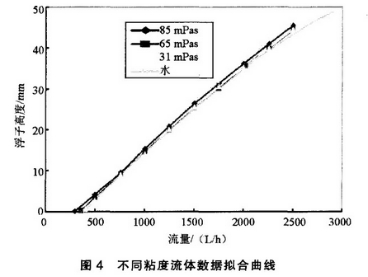 在不同(tong)流體粘度(du)下的測量(liàng)數據,結果(guǒ)表明,流體(ti)粘度影響(xiang)相❤️同🈲高度(du)處浮子的(de)流量測量(liàng)。