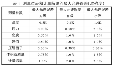 國際建(jian)議中将計量(liàng)站分爲A、B、C三個(ge)等級,對不同(tong)的流量規模(mo)配備的二次(cì)測量儀表要(yào)求不同。該建(jiàn)議适用!于流(liú)量等于或大(dà)于100m/h運行壓力(lì)不低于0.2MPa的情(qíng)況。它對熱值(zhí)測量、測溫、測(ce)壓、取樣以及(jí)包括指示、打(da)印、.存儲、轉換(huan)和積算等系(xi)統部件或設(shè)備都作了相(xiàng)應的技術規(guī)定。表1爲測量(liang)儀表和計算(suan)結果的最大(da)允許誤差(精(jīng)度)。