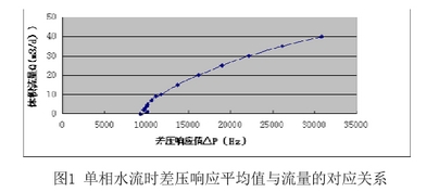 由圖1可以看(kàn)出,單相水流時,流(liu)量與差壓響應值(zhí)曲線具有很好的(de)指數關系,與理論(lun)公式相吻合。