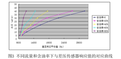 固定節(jiē)流孔(即出液孔)寬(kuān)度爲5mm,在油水兩相(xiàng)流時,打開集流器(qì)集流,改變總流量(liàng)和含油率,差壓傳(chuán)感器的響🏃🏻應值如(rú)圖3所示。