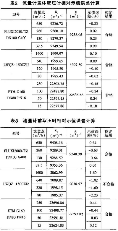 由表2可以(yi)看出,當在流量(liang)計表體取壓時(shí),按JJC1037-2008之5.1.1規定✊3台流(liú)量計的檢定結(jié)果均爲合格。