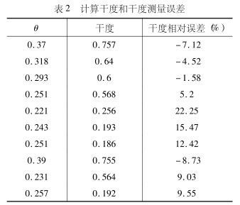 因爲(wei)式(3)和(10)有着非常(cháng)相似的數學表(biao)達式,根據數理(li)統計知識可知(zhi)它們是有聯系(xi)的,圖3可知,這兩(liǎng)張圖的中的R和(he)x及B和x的對應關(guān)系基本一緻,所(suo)以由B代替R時,認(ren)爲它會影響θ的(de)取值但不會對(dui)其變化趨勢帶(dài)來過大的波動(dong)。鑒于本文是研(yán)究θ值的影響因(yīn)素,這裏假設R=B。如(ru)果按照文獻(10)的(de)方法,那麽在此(ci)試驗數據的範(fàn)圍内參數θ應爲(wèi)一定值。通過式(shi)(1)計算得到的θ值(zhí),以及用此測量(liàng)值計算的幹度(dù)值和相對誤差(cha)如表2所示。