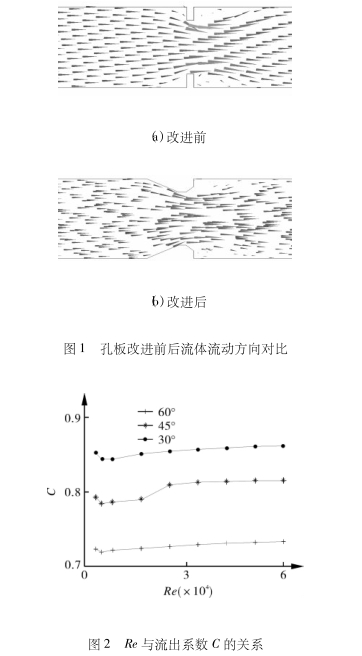 來說,不(bu)同節流件的選(xuǎn)取,直接影響其(qí)性能的好壞🔴。作(zuò)爲常🤞用節流件(jiàn)的标準孔闆,由(you)于其易于安裝(zhuāng),生産成本較🧑🏾🤝🧑🏼低(dī)等優點,導緻目(mu)前國内大約70%的(de)差壓式流量計(jì)是以它作爲節(jie)🔞流件。但随着能(néng)❗源問題的出現(xian),因爲其💯結構的(de)原🔴因導緻節流(liu)損失較大,越來(lai)越❤️多的行業已(yǐ)經放棄了它的(de)使用。如圖1示出(chū)孔闆改進前後(hou)流體流動方向(xiàng)對比。從圖1中可(ke)以看出通過對(duì)垂直入口進行(háng)改進後,得到的(de)孔闆流出特性(xing)較好,具有防堵(du)、節流損🔞失小等(deng)優點。爲了确定(ding)的入口錐.角,本(běn)文通過數值模(mo)拟的方法,對3種(zhǒng)不同入口錐🛀角(jiǎo)的錐形孔闆進(jìn)🍓行管内數值模(mó)拟。得出不同入(rù)口錐角的錐形(xíng)🔞孔闆流出系數(shù)與雷諾數的關(guān)系圖,如📧圖2所示(shì)。從圖中可以得(dé)出,随着入口錐(zhui)角的減小,流出(chu)系數會⁉️增大,但(dàn)增大趨勢減弱(ruò)。根據文獻[15],一味(wèi)的增大流出系(xi)數和減☀️小壓損(sun),可能會造成計(jì)量精度‼️的下降(jiang)。