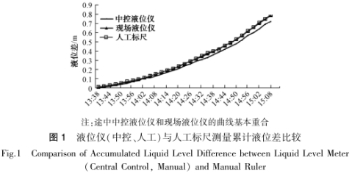 由(you)圖1可知(zhī),人工标(biao)尺測得(de)的液位(wei)差值與(yǔ)現場液(yè)位🈲儀❗基(jī)本吻合(hé),其變化(huà)-緻,但中(zhong)控液位(wei)儀顯示(shi)的數據(jù)呈現🔞一(yī)定🔞的滞(zhi)後性,這(zhe)同信号(hào)的傳輸(shū)距離與(yu)解析方(fāng)式相🔞關(guan)。在日後(hòu)的測量(liang)過程中(zhōng),對于吸(xi)水井和(he)清水池(chi)這些對(dui)測量結(jié)果影響(xiǎng)較🈲大的(de)地方,需(xu)進行人(ren)🔴工标尺(chi)讀數,或(huo)對儀表(biao)校驗後(hou)進行現(xian)場讀數(shu)記錄。