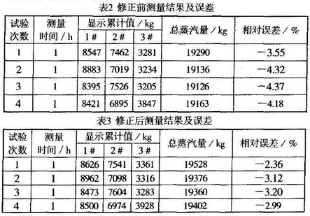 兩台20t/h鍋爐(lú)交替運行(háng),1#和2#管道爲(wèi)φ325mm,3#管道爲φ273mm,壓(ya)力爲0.3~0.4MPa,溫度(dù)250℃。流量計🧡出(chu)廠時儀表(biǎo)常數爲Kep=258.00次(ci)/m³,修正後的(de)儀表常數(shù)爲Kt=255次/m3。其修(xiu)正前、後的(de)♈測量結果(guǒ)及誤差見(jiàn)表2和表3。