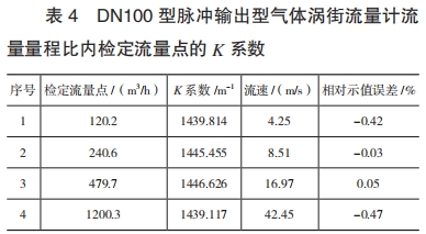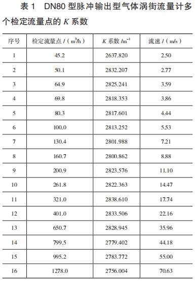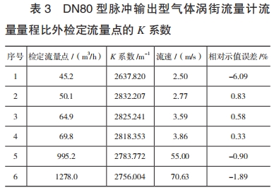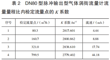 最(zui)小流量爲(wèi)80m³/h。按照JJG1029--2007的要(yào)求,各檢定(dìng)流量點的(de)K系數如表(biao)2所示。