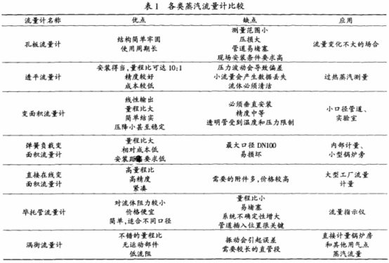 目前在工業上(shang)使用的流量計(ji)的類型非常多(duo),其中适合蒸汽(qì)流量測量的流(liu)量計既有其優(you)點,也有使用上(shang)的缺點。爲✨确保(bao)蒸汽♍流量計的(de)性能和精度,最(zuì)重要的🧡是選用(yong)的流量💜計要符(fú)🧡合所使用的工(gōng)況。表1對各類蒸(zheng)汽流量計的優(you)缺點和應用情(qing)況進行了比較(jiao)。