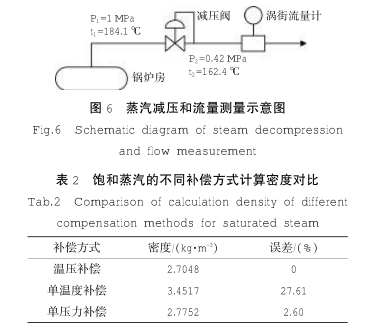 蒸汽減(jiǎn)壓和流(liú)量測量(liang)示意圖(tú)如圖6所(suo)示。化工(gōng)廠鍋爐(lú)出口的(de)⛱️飽和蒸(zheng)汽(1MPa,184.1℃),經過(guo)減壓閥(fá)後轉變(bian)爲過熱(re)蒸🈲汽狀(zhuàng)态(0.42MPa,162.4℃,.密度(dù)2.7048kg/m3),不同補(bu)🌏償方式(shi)計算的(de)密度對(duì)比如表(biao)2所示,溫(wen)⚽度補償(chang)誤差高(gāo)達27.61号,而(ér)壓力補(bu)償誤差(cha)僅在👄2.60号(hào)。