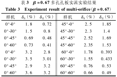 表(biǎo)3爲β=0.67的多孔(kǒng)孔闆流量(liang)計實流實(shí)驗結.果,表(biǎo)中δl1和δl2分别(bie)爲15:1和10:1量🤩程(chéng)🈚範圍内的(de)流出系數(shu)線性度。從(cóng)表中可以(yi)看✊出,當節(jie)流孔前倒(dao)角λ爲30°和45°時(shi),計量精度(dù)較差,流♋出(chū)系數線性(xing)度🔱誤差δl1≥3%,δl2≥2.8%,節(jie)流孔後倒(dǎo)角α值的改(gǎi)變對計量(liang)精度無影(ying)響。當λ爲0°和(hé)60°時,α爲0°和🐅30°的(de)多孔孔闆(pan)流出系數(shu)線性度誤(wù)差δl1≥1.5%,δl2≤0.8%;α爲60°和45°的(de)多孔孔闆(pan)流出系數(shu)線性度誤(wù)差δl1≤0.8%,δl2≤0.5%。從上述(shu)分析可知(zhī),當30°≤λ≤45°時,計量(liàng)精度較差(cha),量程範圍(wéi)較窄;當λ爲(wèi)0°和60°、a≤30°時,在10:1量(liàng)程範圍内(nèi),計量精度(du)較高;當🌈λ爲(wèi)♌0°和60°、45°≤a≤60°時,在15:1量(liàng)程範圍😄内(nei),計量精度(dù)較高。
