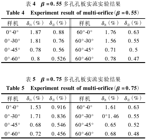 表4和(he)表5分别爲(wèi)β=0.55和β=0.75的多孔(kong)孔闆流量(liàng)計實驗結(jie)果,從實驗(yan)結果中可(kě)以得出與(yǔ)β=0.67的多孔孔(kǒng)闆相同的(de)結論,進一(yī)步驗證了(le)λ爲0°和🔆60°、45°≤a≤60°的多(duō)孔孔闆具(ju)有較寬的(de)量程範圍(wéi)和🔞計量精(jīng)度.