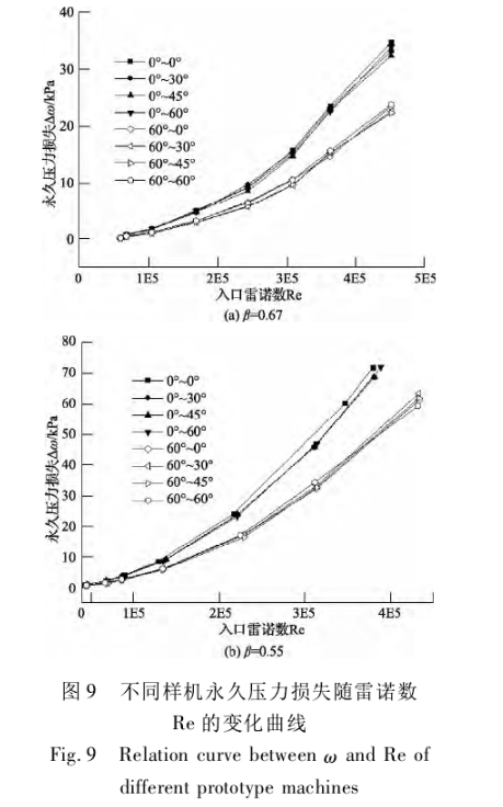 圖9不同(tóng)多孔孔闆(pǎn)流量計永(yong)久壓力損(sǔn)失随管道(dao)入口雷諾(nuo)數✔️的變化(huà)曲線,從圖(tu)中可以看(kan)出,永久壓(ya)力損失△o随(suí)入📧口雷諾(nuo)數Re的增大(da)而增大,前(qián)倒角λ爲60°的(de)多孔孔闆(pǎn)流量計的(de)永久🌂壓力(li)損失比λ爲(wei)♍0°的多孔孔(kǒng)闆降低了(le)35%,比相同節(jiē)流比的标(biao)準孔闆降(jiang)低了50%以上(shang),後🧑🏾🤝🧑🏼倒角α對(dui)△ɷ無明顯影(yǐng)響。因此,λ爲(wei)60°、45°≤α≤60°的多孔孔(kong)闆在較大(dà)的♉量程範(fan)圍内具有(you)較高的計(ji)量精度并(bing)且永久壓(yā)力損失較(jiào)小,實驗結(jie)果與數值(zhí)模拟的🈚結(jié)論一緻。