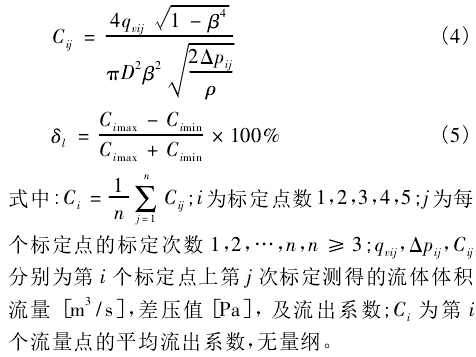式中:qv是體(ti)積流量,m³/s;△p爲(wei)差壓,Pa;C爲流(liú)出系數,無(wú)量綱,該參(can)數💞是從實(shí)驗中獲得(de);ρ爲流體密(mi)度,kg/m³;β爲等效(xiao)直徑比;d,爲(wei)節流孔的(de)等效直徑(jìng);p1爲上遊靜(jìng)壓,P2爲下遊(yóu)靜壓。由式(shi)(1)知,流出系(xi)數C是影響(xiang)多🔴孔孔闆(pan)流量計性(xing)能的唯--參(can)數,通過水(shui)量标準裝(zhuāng)置實流标(biāo)定得到差(cha)👣壓,利用式(shi)🔅(4)計算得到(dao)流📧出系數(shù)C,從式(4)可知(zhi),Op是影響流(liu)出系數C的(de)關鍵因素(sù)。--定量程比(bi)下流出系(xi)數線性度(du)誤差🚶♀️是評(píng)價多孔孔(kong)💜闆流量計(jì)精度等級(ji)的重要指(zhǐ)标,多孔孔(kǒng)闆💜流量計(ji)的流出系(xì)☎️數線性度(du)誤差記⭕作(zuò)δt。