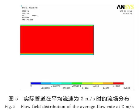 因此,當(dāng)管道内平均(jun1)流速V>0.092m/s時,管道(dao)内的流動狀(zhuàng)态爲紊流;事(shi)實上,四電極(jí)外流式電磁(cí)流量計在工(gong)作的時候,管(guǎn)道内大多數(shu)的流動速度(du)都大于這個(ge)值。當管道内(nei)的流動狀态(tai)爲紊流時,用(yòng)CFD軟件進行流(liu)場分析、計算(suan),通過CFD模拟,可(kě)以分析并且(qie)顯示流體流(liu)動過程中發(fa)生的現象,及(jí)時預測流體(ti)在模拟區域(yu)的流動性能(néng)[10],用有限元軟(ruǎn)件Ansys中的FLOTRANCFD模塊(kuai)對其流場進(jin)行仿真分析(xī),計算結果如(ru)圖5所示。