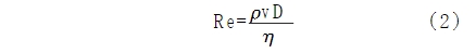 式中:ρ爲流(liu)體密度,kg/m³;v爲(wèi)流體流速(su),m/s;D爲流場的(de)特征長度(du)(圓形管道(dao)爲管道當(dāng)量直徑),m;η爲(wèi)流.體的動(dòng)力黏度,Pa's。