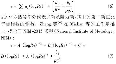 式(shi)(5)中4個含待定(ding)系數的修正(zheng)項依次分别(bié)爲:流體阻力(li)項,軸承靜态(tai)阻力項,軸承(cheng)粘性阻力項(xiang),以及由于軸(zhou)向推力和轉(zhuǎn)子系統的動(dòng)态不平衡引(yǐn)起的軸承阻(zǔ)力項。最後一(yī)項影響很小(xiǎo),可以忽略不(bú)計。在研究中(zhōng)高壓氣體渦(wō)輪流量計時(shi)考慮到軸與(yu)軸承之間的(de)潤滑油處于(yu)層流狀态,認(ren)爲渦輪軸承(cheng)阻力矩與其(qí)渦輪旋轉角(jiǎo)速度呈一階(jie)線性關系,他(tā)們在“渦輪減(jian)速”實驗中發(fa)現,軸承阻力(li)對渦輪流量(liang)計的影響在(zai)低雷諾數下(xià)尤其明顯,基(ji)于實驗數據(jù),提出了以下(xia)的模型:
