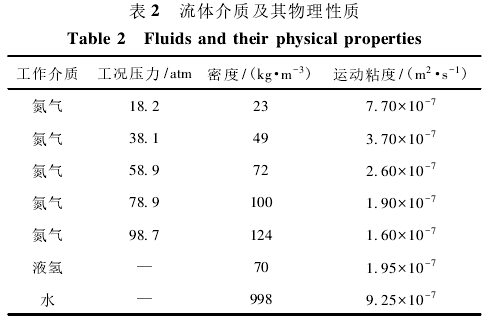 在測量推(tui)進系統的液(yè)氫流量過程(cheng)中,爲了降低(dī)危險和實驗(yan)成本,使用高(gāo)壓氮氣模拟(ni)液氫标定一(yī)台1.5inch3渦輪流量(liàng)計,實驗工況(kuàng)及物性參數(shù)如表2所示。