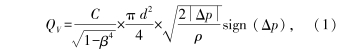 通常在(zài)特定測(cè)壓位置(zhi)和特定(ding)流體參(can)數情況(kuang)下,根據(jù)流體流(liú)動的連(lian)續性方(fāng)程和伯(bó)努利方(fang)程可推(tui)導出孔(kong)闆前後(hou)差壓△p與(yu)流經節(jiē)流孔的(de)體積流(liú)量QY滿足(zú)以下函(hán)數關系(xi)[5],即