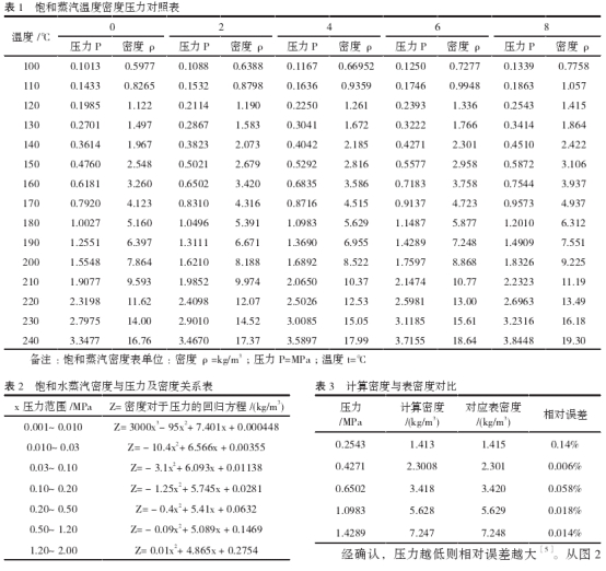 根(gen)據經驗公式,飽(bǎo)和水蒸汽密度(du)與壓力及密度(dù)的關系(4)如表2。
