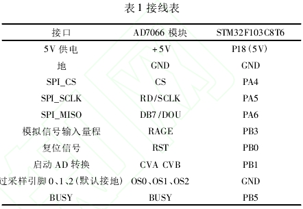 控制(zhì)電路以STM32F103C8T6爲(wei)核心組成(chéng)最小系統(tǒng),引出足夠(gòu)的I/O口以作(zuò)🈲拓展。因👨❤️👨爲(wei)信号調理(li)電路輸出(chu)的電勢差(chà)U2具有正負(fu)極性🥰,所以(yi)STM32F103C8T6自帶AD采集(jí)無法滿足(zu)要求,選用(yong)AD7066芯片進行(hang)采🎯集。AD7066自帶(dai)數字濾波(bo)器,有8個采(cai)集通道,支(zhi)持真正±10V或(huo)±5V的雙極性(xing)信号🌈輸入(ru)電流。AD7066有并(bing)口接🔞線和(hé)SPI串口接線(xiàn)兩種接線(xian)方式,此處(chù)采用SPI串口(kou)接🐕線。STM32最小(xiao)系統😘與AD7066之(zhī)間的接線(xiàn)如表1所示(shì)。AD7066的V1~V4口分别(bié)采集U1~U4的電(dian)壓值🧑🏽🤝🧑🏻。STM32通過(guò)對電位器(qi)X9111的RL控制改(gai)變電源輸(shu)出電壓大(dà)小。STM32的PB13口接(jie)X9111的SCK口,PB14口接(jiē)X9111的SO口💋,PB15口接(jiē)SI口。
