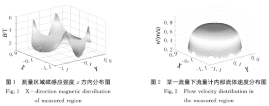 通(tong)過數據處理獲(huo)得測量區域磁(cí)感應強度在x軸(zhou)方向的🛀分布情(qing)況.如圖1所示爲(wèi)電磁流量計測(cè)量區域磁感應(ying)強度x方向分布(bù)圖✔️.圖中x軸與y軸(zhou)分别代表測量(liàng)區域的“電極😘方(fāng)向”與💘“磁場方向(xiàng)"(x軸與🔅y軸所形成(chéng)的👈面平行于❓測(ce)量管的📧檢測電(dian)極徑向截面🥵).從(cong)仿真圖🆚上可以(yi)看出流量計的(de)磁感應強度分(fèn)布不是一個恒(heng)定的值.