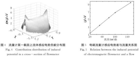 仿真與(yu)數值計算方法(fǎ)爲電磁流量計(jì)此感應電動🔆勢(shì)的🌂計算提供了(le)-種新的解決方(fāng)案,利用該方法(fa)求出了💯流量計(ji)的感應📱電勢差(chà),即完成電磁流(liú)量計一-次傳感(gan)🔞系數轉換.流量(liàng)計傳感器獲取(qǔ)的感應電勢差(chà)(感應信号)一般(bān)需通過信号預(yù)處理,信号放大(da)單元,高通低通(tōng)濾波,進行信🈲号(hào)提升單元🌏等環(huan)節最後輸出流(liu)量測量🔆顯示值(zhi).二次儀表轉換(huàn)是将電💔極間的(de)感應電勢差轉(zhuǎn)換爲顯示的流(liú)量,二次儀表轉(zhuan)化技術已經基(jī)本成熟♊.當然本(běn)文爲仿真實驗(yàn)在工業實際應(ying)用中需要運用(yong)大量的幹濕标(biao)定對比🌈實驗進(jìn)行對流量計标(biao)定進行修正,獲(huo)取一定的修正(zheng)經🏃♀️驗值後,然後(hòu)對流量計幹标(biāo)定結果進行修(xiu)正,從而♌獲得💯正(zhèng)确有效的電極(ji)此感應電動勢(shi).