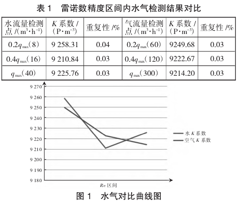 計算得(de)出:對于(yú)DN50口徑,液(yè)體渦街(jiē)流量計(ji)雷諾數(shu)範圍爲(wèi)2.831×104~2.811×105;氣體渦(wō)街流量(liang)計雷諾(nuò)數範圍(wéi)爲1.411×10*~1412×105。由上(shàng)看出,氣(qi)體渦街(jie)最小💃流(liú)量測量(liang)點雷諾(nuo)數已不(bú)在精度(du)保證範(fàn)😄圍之内(nei),同時,根(gen)據JJG1029--2007《渦街(jie)流量計(ji)檢定規(gui)程》,氣體(tǐ)渦街流(liú)量計在(zai)流量點(dian)在qt(0.2qmax)以下(xia)時,1.0級渦(wo)街流量(liang)計誤差(cha)允許達(da)到±2%,此時(shí)的K值對(dui)我們的(de)研究有(you)不确定(ding)性,因此(cǐ),選取qt(0.2qmax)及(jí)以上流(liú)量點(包(bāo)括0.2qmax、0.4qmax、qmax),利用(yòng)兩套标(biāo)準裝置(zhi)對上述(shu)流量點(dian)進行檢(jiǎn)測。