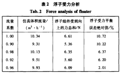 根(gēn)據設計(ji)初樣給(gěi)出的浮(fú)子材料(liao)及尺寸(cun)結構,可(kě)得浮子(zǐ)重力爲(wèi)5.97N.從FLUENT的受(shou)力報告(gào)中可以(yi)得到表(biao)2所示數(shù)據.